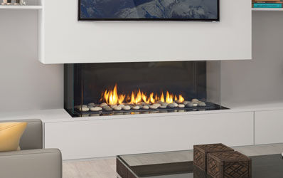 Flush to the wall and reflective, black glass extended view panels focus the eye, create visual balance and amplify flames for maximum impact. A literal expansion of City Series’ frameless firebox, extended view