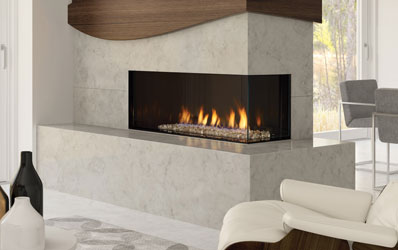 The two-sided corner fireplace allows you to have design flexibility from any side of the room.